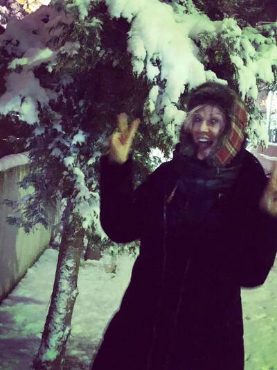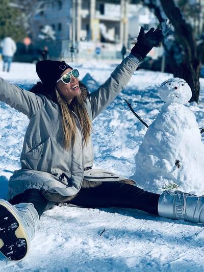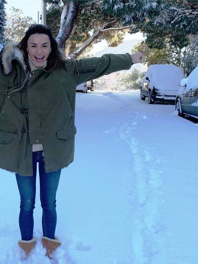 Η Μελίνα Ασλανίδου χαίρεται το χιόνι σα μικρό παιδί.
