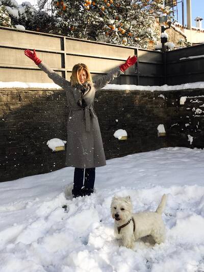 Η Νίκη Κάρτσωνα χαίρεται το χιόνι με τον τετράποδο φίλο της.