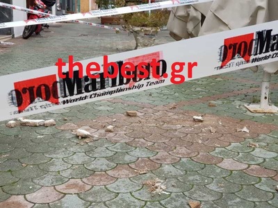 Σοβάδες από πολυκατοικία έπεσαν στη Στρατοκλέους κοντά στην Κορίνθου. Το σημείο σημάνθηκε με κορδέλα ενώ δεν έχουν αναφερθεί τραυματισμοί.