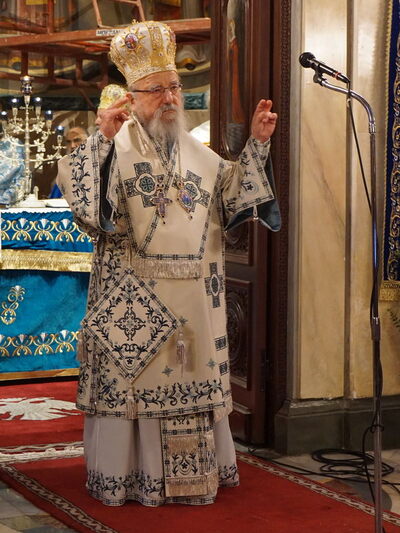 Συλλειτούργησαν οἱ Σεβασμιώτατοι Μητροπολίτες: Αἰτωλίας καὶ Ἀκαρνανίας κ. Κοσμᾶς καὶ Πατρῶν κ.κ. Χρυσόστομος καὶ ὁ Θεοφιλέστατος Ἐπίσκοπος Κερνίτσης κ. Χρύσανθος, μὲ τὴν συμμετοχὴ πολλῶν Ἱερέων καὶ Διακόνων τῆς Ἱερᾶς Μητροπόλεως καὶ πλήθους Λαοῦ.