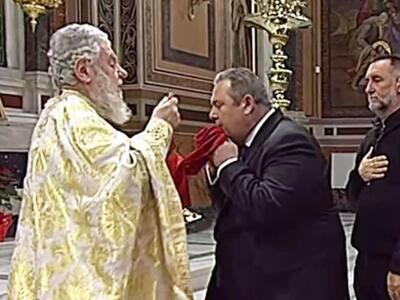 Ο πρόεδρος των ΑΝΕΛ πριν τη συνάντησή του με τον Αλέξη Τσίπρα στο Μέγαρο Μαξίμου, πήγε στον Μητροπολιτικό Ναό της Αρχιεπισκοπής Αθηνών και εκκλησιάστηκε. Μάλιστα, ο κ. Καμμένος στο τέλος της λειτουργίας κοινώνησε.