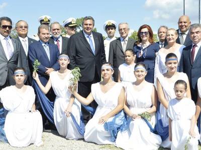 Πολλά ενδιαφέροντα καρέ είχε χαρίσει η απόφαση του να τιμήσει την επέτειο της Ναυμαχίας της Σαλαμίνας (Σεπτέμβριος 480 π.Χ.). Ο Πάνος Καμμένος περπάτησε πάνω σε ένα κόκκινο χαλί που ήταν στρωμένο σε παλέτες και φτάνοντας στην παραλία υποκλίθηκε στη θάλασσα!