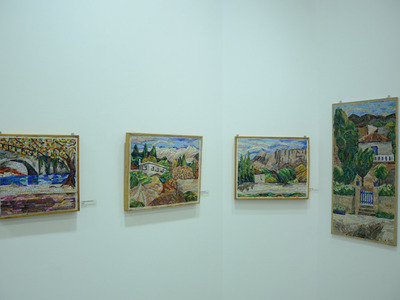 Η ψηφιδογράφος μέσα από την ξενάγηση που παρακολούθησαν πολλοί φιλότεχνοι, ανέδειξε το πολυσύνθετο και πολύμορφο έργο του που ανακαλεί στη μνήμη αιώνια πρωτεϊκά σχήματα, υπαινικτικές γραφές, σήματα και ίχνη ως διαχρονικά σύμβολα της ελληνικότητας που πηγάζει αβίαστα από την τρυφερή και στέρεη απόδοση τοπίων και προσώπων, εικόνων της λαϊκής μας παράδοσης και των εθίμων της πατρίδας του.