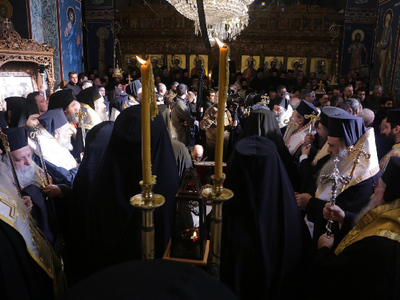 Στην ακολουθία στον ιερό Μητροπολιτικό Ναό του Αγίου Δημητρίου προεξήρχε ο Μακαριότατος Αρχιεπίσκοπος Αθηνών και πάσης Ελλάδος κ.κ. Ιερώνυμος, συμπαραστατούμενος από πλειάδα Ιεραρχών της Εκκλησίας της Ελλάδος, μεταξύ των οποίων και οι σεβασμιότατοι Μητροπολίτες Πατρών κ.κ. Χρυσόστομος και Ναυπάκτου και Αγ. Βλασίου κ.κ. Ιερόθεος.
