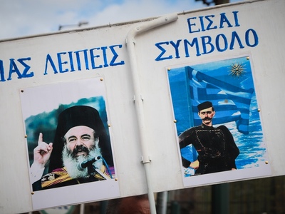 Ελληνική σημαία και ο Ανδρέας Κατσανιώτης στην πλατεία Γεωργίου