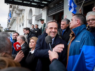 Ο Αντώνης Σαμαράς με τη σύζυγό του στο Σύνταγμα
