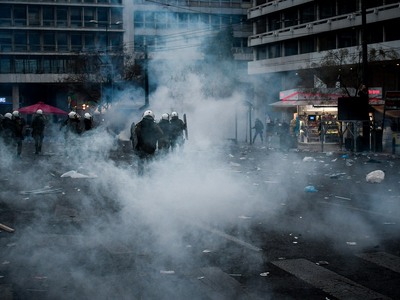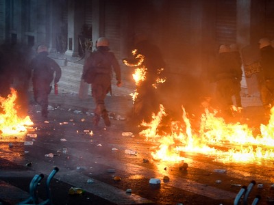 Ωστόσο, μια ομάδα διαδηλωτών, με κουκούλες, κράνη και αντιασφυξιογόνες μάσκες, επιχείρησε να ανέβη στα σκαλιά πίσω από τον Άγνωστο Στρατιώτη με σκοπό να εισβάλει στο κοινοβούλιο. Εκεί τους περίμενε ισχυρή αστυνομική δύναμη.