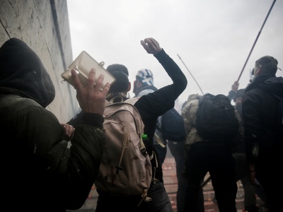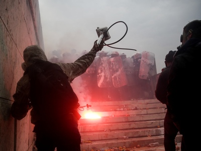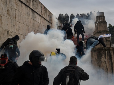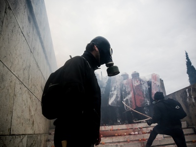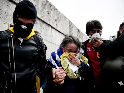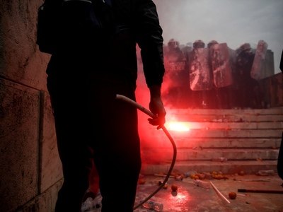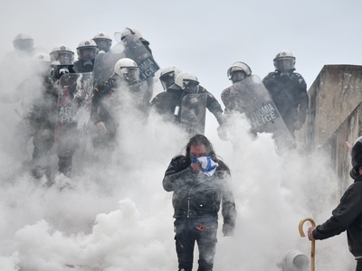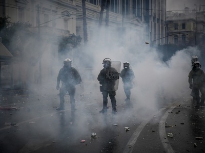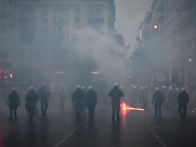 Η ατμόσφαιρα από τα καπνογόνα, τις φωτοβολίδες και τα δακρυγόνα, ήταν αποπνικτική