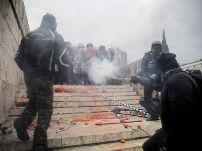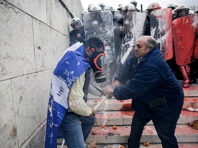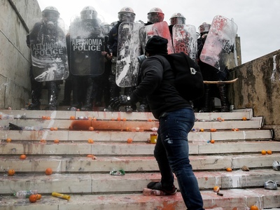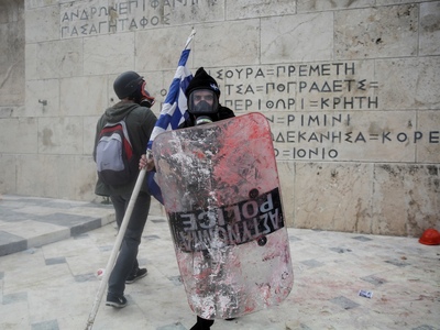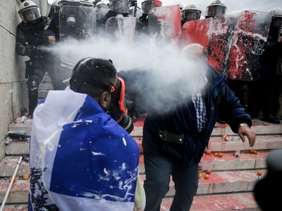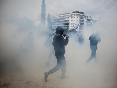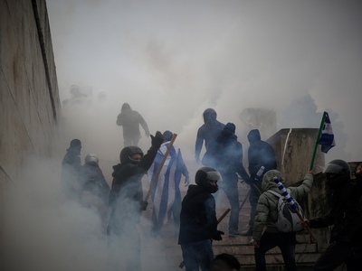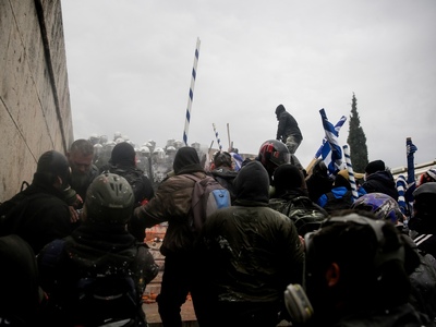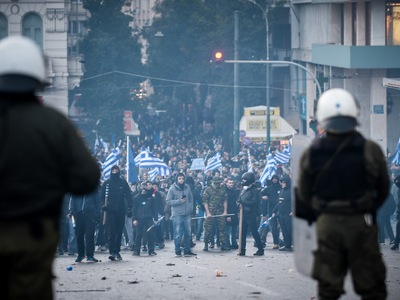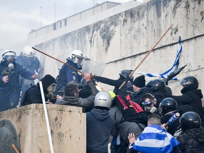 Άγρια επεισόδια μεταξύ κουκουλοφόρων και αστυνομικών δυνάμεων των ΜΑΤ, επιθέσεις σε φωτορεπόρτερ κι εικονολήπτη της ΕΡΤ, πέτρες, φωτοβολίδες, και εκτεταμένη χρήση χημικών, ακολούθησαν μετά το μαζικό συλλαλητήριο ενάντια στη συμφωνία των Πρεσπών που πραγματοποιήθηκε σήμερα στο Σύνταγμα. Η ατμόσφαιρα από τα καπνογόνα, τις φωτοβολίδες και τα δακρυγόνα, ήταν αποπνικτική με αποτέλεσμα πλήθος κόσμου να τρέχει πανικόβλητο στους δρόμους γύρω από το κέντρο της Αθήνας και σταδιακά να αποχωρεί από τη συγκέντρωση.