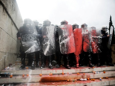 Σύμφωνα με ανακοίνωση που εξέδωσε το Αρχηγείο της ΕΛ.ΑΣ οι συγκεκριμένες ομάδες ατόμων «επιτέθηκαν επανειλημμένα και με ιδιαίτερη σφοδρότητα κατά των αστυνομικών δυνάμεων, με πέτρες, σίδερα, καδρόνια, φωτοβολίδες, εμπρηστικές μολότοφ και άλλα επικίνδυνα αντικείμενα, με σαφή πρόθεση να διασπάσουν τη διάταξη των δυνάμεων και να εισβάλουν στους χώρους του Κοινοβουλίου».