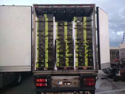 Συγκεκριμένα, σε έλεγχο που διενεργήθηκε στην πύλη ελέγχου οχημάτων του νότιου λιμένα Πάτρας, από στελέχη της κινητής μονάδας ανίχνευσης με ακτίνες Χ (X-RAY VAN), καθώς και από στελέχη της Περιφερειακής Ομάδας Δίωξης Nαρκωτικών Oυσιών της οικείας Λιμενικής Αρχής, σε Φ/Γ όχημα με επικαθήμενο που οδηγούσε ο 24χρονος το οποίο επρόκειτο να φορτωθεί σε Ε/Γ-Ο/Γ πλοίο που θα απέπλεε για Ιταλία, διαπιστώθηκε ότι εντός του χώρου του επικαθήμενου το οποίο αποτελούνταν από παλέτες με ακτινίδια, έφερε τριάντα τρεις (33) παλέτες που περιείχαν τριάντα έξι χιλιάδες εννιακόσιες δεκαέξι (36.916) κούτες τσιγάρων (369.160 πακέτα τσιγάρων) δύο διαφορετικών επωνυμιών, για τα οποία δεν διέθετε νόμιμα παραστατικά κατοχής και διακίνησης.