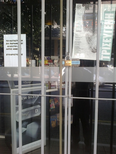 Την περασμένη Τετάρτη 16 Ιανουαρίου 2019 σύμφωνα με πληροφορίες, όσοι περνούσαν από το σημείο ή πήγαιναν για την πρωινή τους εφημερίδα, καφέ ή για κάποιο Ελληνικό ή ξένο περιοδικό (το κατάστημα διέθετε πολύ καλά ενημερωμένο χώρο με Ξένο Τύπο) είδαν το κατάστημα κλειστό με κάγκελα γύρω γύρω και την ένδειξη ότι θα παραμείνει κλειστό για λίγες μέρες. Ωστόσο όπως εξελίσσονται τα πράγματα, το μαγαζί δεν φαίνεται να ξανανοίγει προς μεγάλη απογοήτευση των δεκάδων πελατών του που το είχαν αγαπήσει και το στήριζαν.