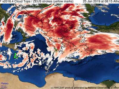 Κατά το υπόλοιπο της Παρασκευής 25/01 αναμένεται να συνεχίσουν οι βροχές, οι οποίες κατά τόπους θα είναι ισχυρές, ενώ θα εκδηλωθούν και καταιγίδες, κυρίως σε θαλάσσιες και παράκτιες περιοχές. Χιονοπτώσεις θα σημειωθούν στα βόρεια ορεινά. Τα φαινόμενα στην Ήπειρο, τη Θεσσαλία και τη Δυτική Μακεδονία θα εξασθενήσουν σημαντικά από το απόγευμα. Οι άνεμοι στο Αιγαίο θα πνέουν από νότιες και νοτιοδυτικές διευθύνσεις έως 9 μποφόρ, με πολύ υψηλό κυματισμό, ενώ στο Ιόνιο από βορειοδυτικές διευθύνσεις έως 7 μποφόρ. Η θερμοκρασία δεν θα παρουσιάσει αξιόλογη μεταβολή. Επιπρόσθετα, μεγάλη συγκέντρωση αφρικανικής σκόνης θα παρατηρηθεί στη Νότια Ελλάδα (Χάρτης 3), κυρίως στην Κρήτη όπου θα σημειωθούν και λασποβροχές.