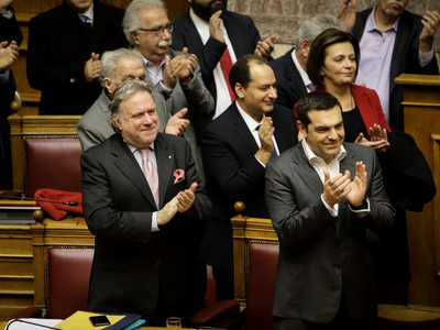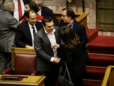 Με την ανακοίνωση ροτ αποτελέσματος της ψηφοφορίας ο Αλέξης Τσίπρας είχε θερμούς εναγκαλισμούς με τους βουλευτές του.