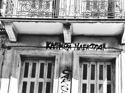Δυσδιάκριτο από τους περαστικούς, ψηλά στο νεοκλασικό, σε σημείο όπου μόνο στην απέναντι πολυκατοικία ήταν ορατό!