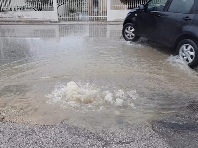 Το οχήματα που κινούνταν στην οδό Πανεπιστημίου, έκαναν μανούβρες για να αποφύγουν τη λίμνη που είχε σχηματιστεί στο οδόστρωμα.