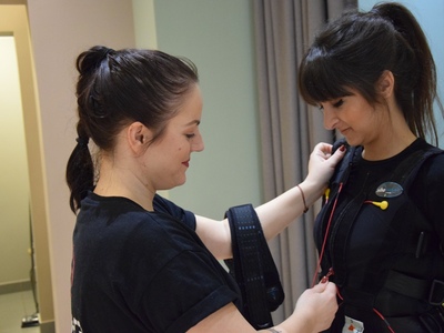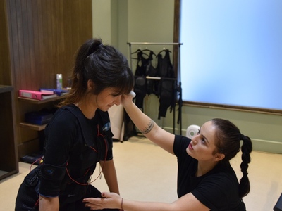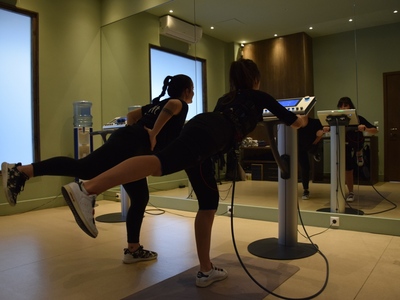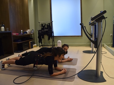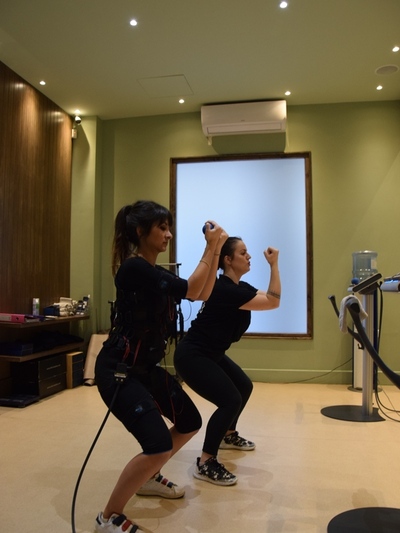 Η προπόνηση ξεκίνησε φορώντας το ειδικό γιλέκο με ηλεκτρόδια που διεγείρει όλες τις ομάδες των μυών με την βοήθεια της Θάλειας, φυσικά. Στις μεγάλες μυϊκές ομάδες (πόδια, κοιλιά, γλουτοί, πλάτη, στήθος, χέρια, ώμοι), τοποθετούνται 8 συνολικά ζευγάρια από ηλεκτρόδια. Μέσω των μικρών διεγέρσεων που προκαλεί το γιλέκο Miha bodytec, ενεργοποιούνται και ασκούνται όλοι οι μύες που βρίσκονται ανάμεσα στα ηλεκτρόδια, αλλά και οι μύες που βρίσκονται βαθύτερα στο σώμα. Έτσι, αποφεύγονται οι μονομερείς πιέσεις και η ενδεχόμενη μυϊκή ανισορροπία, ενώ ταυτόχρονα επιτυγχάνεται η εντονότερη άσκηση κάθε επιμέρους μυός.