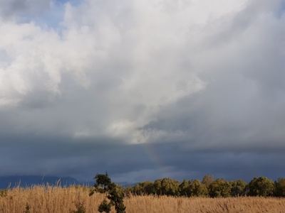 Ένα ουράνιο τόξο μπορούσε να αντικρύσει κανείς το πρωί της Πέμπτης, προοπτικά πάνω από την Ναύπακτο, κι έτσι όπως κανείς κοιτούσε τον ουρανό από την αχαϊκή πρωτεύουσα, βορειοανατολικά της Γέφυρας Ρίου Αντιρρίου.