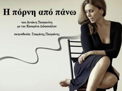 Ο θεατρικός μονόλογος του Αντώνη Τσιπιανίτη «Η πόρνη από πάνω» με την Κορίνθια στην καταγωγή ηθοποιό Κατερίνα Διδασκάλου σε σκηνοθεσία του Σταμάτη Πατρώνη που έχει αποσπάσει τις καλύτερες κριτικές από κοινό και κριτικούς και έχει παρουσιαστεί κατά το παρελθόν με επιτυχία στην Πάτρα, επιστρέφει στην Αχαική πρωτεύουσα για 2 μοναδικές παραστάσεις την Τετάρτη 13 και το Σάββατο 16 Φεβρουαρίου 2019, στο Επίκεντρο+, στην οδό Αγ. Διονυσίου και Νόρμαν.
