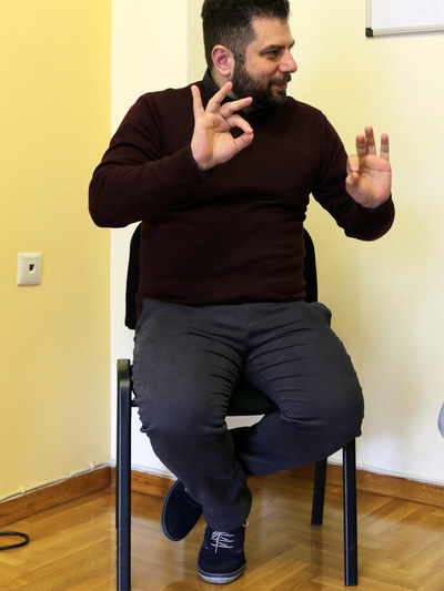 Αυτή ήταν η πρώτη λέξη που «βγήκε» από το στόμα μου. Από εκεί και πέρα, ξεκίνησα να μιλάω πιο άνετα και πιο εύκολα. Μπορώ να μιλήσω, αλλά μου αρέσει να χρησιμοποιώ την νοηματική γιατί αυτή είναι η γλώσσα μου. Έφτασα μάλιστα στο σημείο να την διδάσκω. Θα μπορούσα να πω ότι είμαι δίγλωσσος.