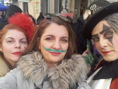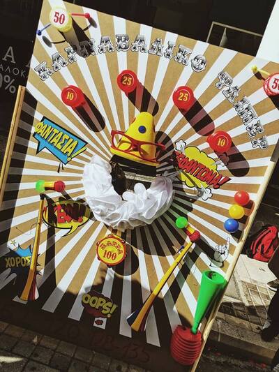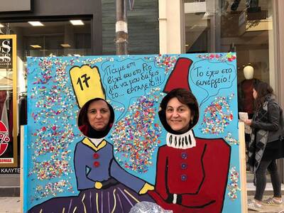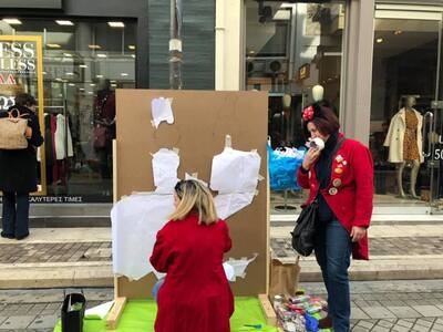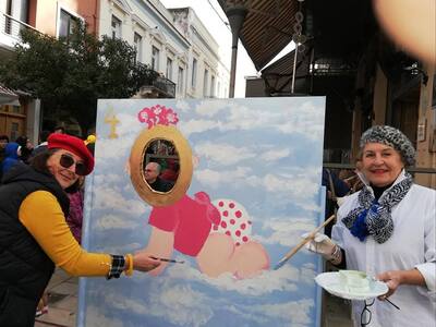 Στη συμβολή της Γεροκωστοπούλου με τη Ρήγα Φεραίου τα μέλη των καρναβαλικών πληρωμάτων κλήθηκαν με την ανάλογη αμφίεση, να ζωγραφίσουν ένα "Head in Hole", έναν πίνακα δηλαδή όπου το κεφάλι (ή και όποιο άλλο μέρος του σώματος ) θα ήταν κενό ώστε να μπορεί ο οποιοσδήποτε να "χώνει τη μουτσούνα του" δημιουργώντας ευφάνταστα φωτογραφικά στιγμιότυπα!