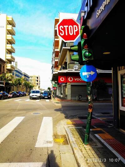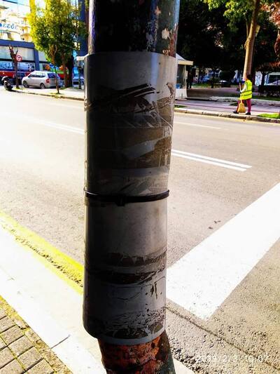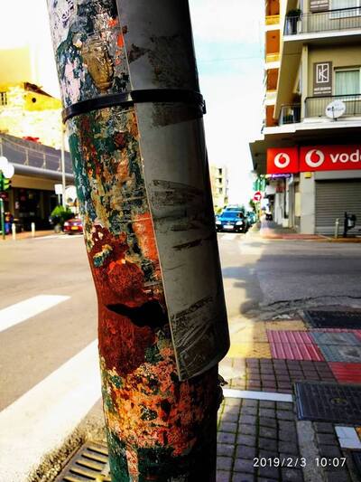 Αξιοθεατο τείνει να γίνει στο κέντρο της Πάτρας το... "τραυματισμένο" φανάρι στη συμβολή της Γούναρη με την Αγίου Ανδρέου.