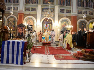Μέ τήν εὐκαιρία τῆς ἱστορικῆς αὐτῆς ἐπετείου, τῆς συμπληρώσεως 176 ἐτῶν ἀπό τήν πρός Κύριον ἐκδημία τοῦ θρυλικοῦ Γέρου τοῦ Μωρηᾶ, ὁ Σεβασμιώτατος Μητροπολίτης Πατρῶν κ.κ. Χρυσόστομος, ἐτέλεσε τήν Δευτέρα 4.2.2019, τήν Θεία Λειτουργία στόν Ἱερό Μητροπολιτικό Ναό Εὐαγγελιστρίας Πατρῶν καί ἐν συνεχείᾳ ἐπιμνημόσυνη δέηση ὑπέρ ἀναπαύσεως τῆς ψυχῆς του, τῇ συμμετοχῇ πολλῶν Ἱερέων καί πλήθους Λαοῦ, οἱ ὁποῖοι προσέτρεξαν γιά νά ἀποδώσουν φόρο τιμῆς καί εὐγνωμοσύνης στόν ἣρωα καί ἀπελευθερωτή τῆς Ἑλλάδος.