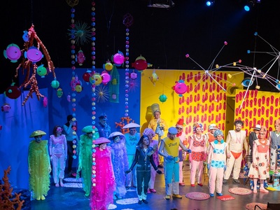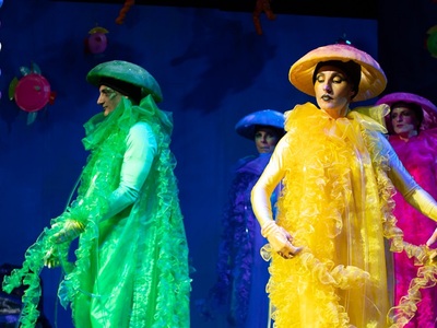 Η παράσταση προς το τέλος περιέχει μια συγκινητική αναφορά στη Ντούλη Δημητροπούλου που «έφυγε» τόσο πρόωρα έχοντας «ντύσει» όλα τα θεάματα του Κομιτάτου και έχοντας δημιουργήσει τη δική της αισθητική σχολή στο Πατρινό Καρναβάλι. Διαθέτει επίσης το τραγούδι «Μ’ έντυσαν Μέδουσα» με ερμηνευτή το Γιάννη Τζόβολο. Ολος ο 20μελής θίασος παίζει πραγματικά με μεγάλη άνεση τις καρικατούρες μέσα και έξω από το βυθό (και ο Χάρης Πανούτσος έστω σαν λιγομίλητη guest ντουζιέρα σου «μένει» με τις γκριμάτσες και τις αγανακτισμένες φωνές του).