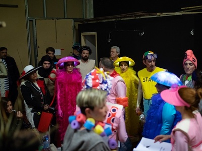 *Σας συστήνουμε να πάτε ανεπιφύλακτα ως την Κυριακή, είναι από τις καλύτερες θεατρικές στιγμές του Κομιτάτου. Στην πρεμιέρα είδαμε παλιούς και νέους κομιτατζήδες, πιστούς καρναβαλιστές και εκπροσώπους του «Κρυμμένου Θησαυρού», κόσμο που ασχολείται με το τοπικό ερασιτεχνικό θέατρο, τον υποψήφιο δήμαρχο Γρηγόρη Αλεξόπουλο, τον πρόεδρο του Καρναβαλιού του Δήμου Νίκο Χρυσοβιτσάνο κ.α Τα χειροκροτήματα και τα συγχαρητήρια ήταν θερμά στο φινάλε. Σας έχουμε στιγμιότυπα πάνω και κάτω από τη σκηνή.