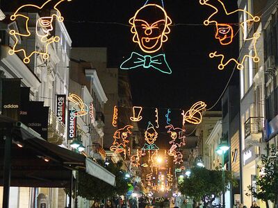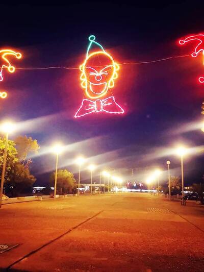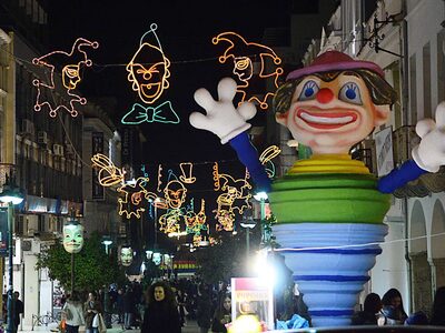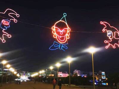 Το τμήμα ηλεκτροφωτισμού του Δήμου Πατρέων έκανε έναν αγώνα δρόμου τις τελευταίες εβδομάδες τοποθετώντας καρναβαλικά διακοσμητικά στοιχεία και φώτα στους δρόμους και σε κολόνες, που αναπαριστούν αρλεκίνους, κλόουν, φωτιστικά μπαστούνια και άλλα μοτίβα.
