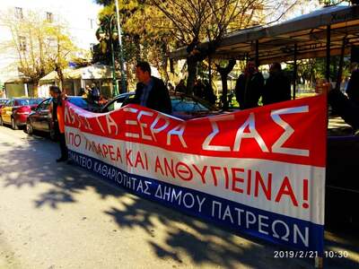 Η πορεία κατέληξε στο Δημαρχείο όπου και επέδωσαν στον Δήμαρχο Πατρέων ψήφισμα.