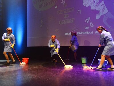 Απολαυστικά ήταν τα μέλη των καρναβαλικών πληρωμάτων που συμμετείχαν στα θεάματα του κρυμμένου θησαυρού το απόγευμα της Τεταρτης στο Royal Theater. Τα μέλη των καρναβαλικών πληρωμάτων δημιούργησαν και παρουσίασαν το Στο πλαίσιο της δράσης "Περιοδεύον θίασος» trailer μιας κινηματογραφικής ταινίας με θεατρικό τρόπο στο πλαίσιο της δράσης «Περιοδεύον θίασος».