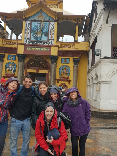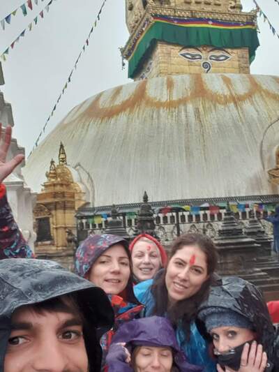 Την πρώτη ημέρα νοικιάσαμε ένα βανάκι -με τα παιδιά που είχαμε φθάσει το προηγούμενο βράδυ- και κάναμε ένα tour. Επισκεφθήκαμε την Kathmandu Durbar Square, που είναι η κεντρική τους πλατεία, εκεί υπάρχει ακόμα ο σωρός με τα χώματα από το κατεδαφισμένο μνημείο από τον σεισμό. Ήταν περίεργο το συναίσθημα, ξέροντας ότι αυτός ο σεισμός είχε 18.000 νεκρούς.