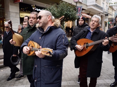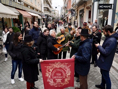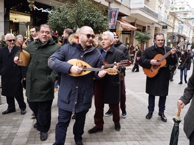 Παρά το τσουχτερό κρύο που επικράτησε το μεσημέρι του Σαββάτου 23 Φεβρουαρίου 2019 στην Πάτρα, οι Τραγουδιστάδες τση Ζάκυνθος έκαναν δυναμική την παρουσία τους στον πεζόδρομο της Ρήγα Φεραίου αποδεικνύοντας το αξεπέραστο μεράκι τους και την αγάπη τους για τη μουσική και το ερασιτεχνικό τους πάθος.
