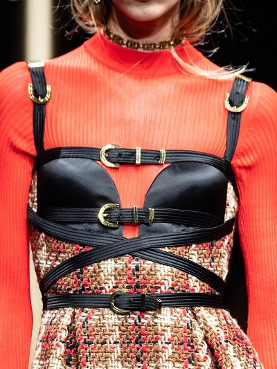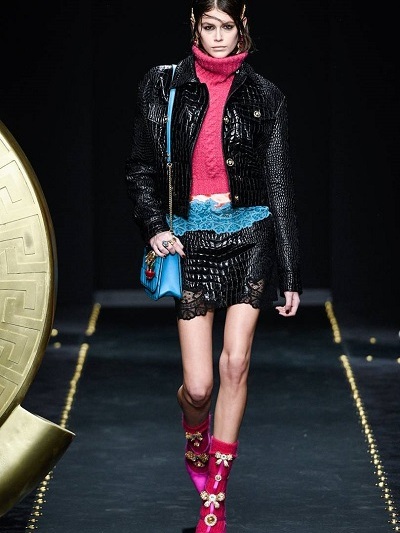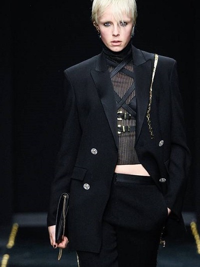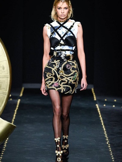 Πολύ μαύρο, νομίσματα, επιθετικό δέρμα, φετιχιστικά λουριά, «μπαλώματα» και γαρνιρίσματα δαντέλας, έντονες μονοχρωμίες, καρώ και μπαρόκ εμπριμέ έκαναν πάλι εντύπωση όπως την εποχή που βασίλευε ο αξέχαστος Τζιάνι. Στο φινάλε η Donatela Versace χαιρέτησε με κοντή δερμάτινη φούστα. Front row ήταν Αμπερ Βαλέτα και Ολίβια Παλέρμο.