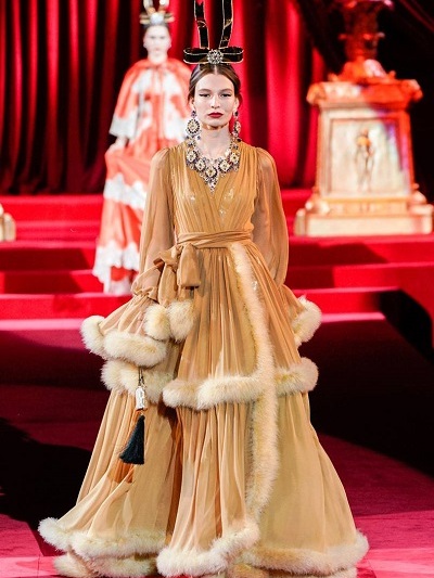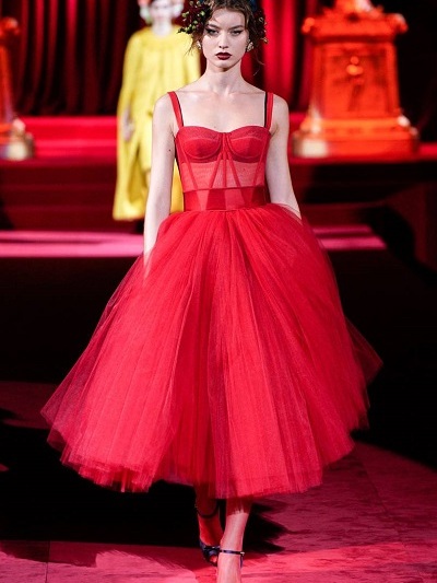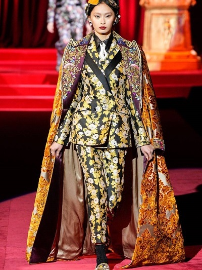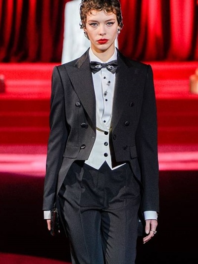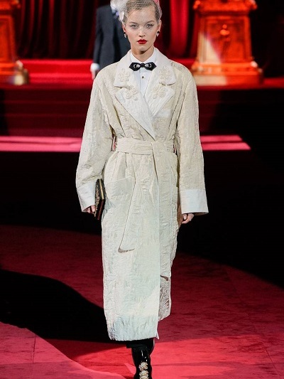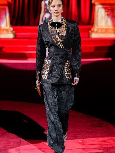 Όμως και οι Dolce e Gabbana επένδυσαν σε αυτό που κάνουν καλά. Παρουσίασαν υπέροχα ανδρόγυνα κοστούμια εκπληκτικής εφαρμογής από ανδρικά υφάσματα, μπροκάρ και λεοπάρ, ρομαντικά «τεατράλε» φορέματα και σύνολα που παρέπεμπαν στη δεκαετία του ’50 και σαγηνευτικά νυφικά με φουσκωτές φούστες. Τα περίτεχνα αξεσουάρ όπως πάντα «σε άλλη διάσταση». Πίσω μια κατακόκκινη οπερατική κουίντα και τίτλος της συλλογής «Eleganza».