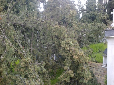 Το σημείο είναι σχετικά μπροστά στο Α’ Νεκροταφείο και καλό είναι οι αρμόδιοι να φροντίσουν να το κόψουν και να το απομακρύνουν ενώ είναι ευτύχημα που εκείνη την στιγμή δεν βρισκόταν κάποιος συμπολίτης στο σημείο για να ανάψει το καντήλι προσφιλούς του προσώπου γιατί θα μπορούσε να είχε τραυματιστεί. Ενδεχομένως να έχουν πέσει κι άλλα δέντρα από τον αέρα σε άλλα σημεία του αρκετά μεγάλου Α’ Νεκροταφείου και καλό είναι οι υπεύθυνοι να ελέγξουν το χώρο.