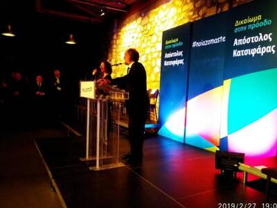 Μετά τον Πύργο, την Δευτέρα, και το Αγρίνιο, την Τρίτη 26 Φεβρουαρίου 2019, ο Περιφερειάρχης Δυτικής Ελλάδας Απόστολος Κατσιφάρας και εκ νέου υποψήφιος, παρουσίασε απόψε τους υποψηφίους περιφερειακούς συμβούλους της παράταξης «Δικαίωμα στην Πρόοδο» στην Αχαΐα. Η εκδήλωση έγινε στον πολυχώρο Αίγλη, στη Βέσο Μάρε στην Πάτρα, παρουσία πλήθους κόσμου που είχε γεμίσει ασφυκτικά την αίθουσα και σε κλίμα ενθουσιαμού.