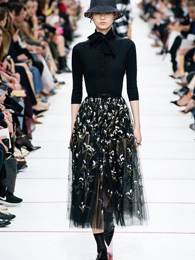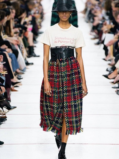 Υμνησε και πάλι την παραδοσιακή 50s σιλουέτα Dior με τη στενή μέση και την γεμάτη κίνηση λοξή φούστα στο Musee Rodin η ιταλίδα ηνίοχος του θρυλικού γαλλικού οίκου Maria Grazia Chiuri. Πολλά καρώ, κεντημένα τούλια, φαρδιές δερμάτινες ζώνες και το απαραίτητο t-shirt με το κοινωνικό μήνυμα ομόνοιας και αλληλοσεβασμού καταχειροκροτήθηκαν.