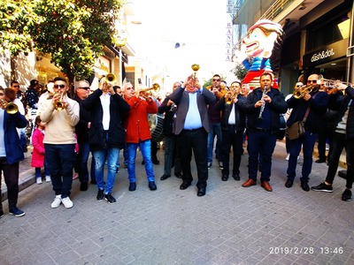 Σε εορταστικούς ρυθμούς κινείται η Πάτρα και οι μπάντες χάλκινων πνευστών με τη συνοδεία του Χορευτικού Τμήματος του Δήμου Πατρέων ξεσηκώνουν με τους ήχους τους συνοικίες της πόλης, ενώ έκαναν και παρέλαση στον πεζόδρομο της Ρήγα Φεραίου.