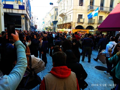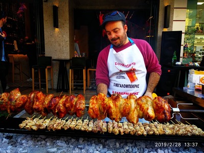 Η Ρήγα Φεραίου έχει κυριολεκτικά κλείσει από τον κόσμο. Πανικός και στην Μαιζώνος. Κάθε μαγαζί και μία ψησταριά, κάθε γωνία και μια τσίκνα.