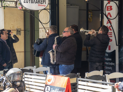 Μπάντες χάλκινων πνευστών περιδιάβηκαν γειτονιές της πόλης το μεσημέρι της Τσικνοπέμπτης
