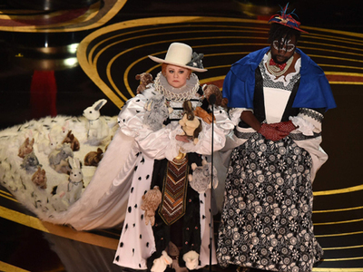 Το καπέλο της παρέπεμπε στην «Μπαλάντα του Μπάστερ Σκραγκς», η περούκα της στο φιλμ «Μαίρη, η Βασίλισσα της Σκοτίας» ενώ η κάπα του Χένρι ήταν «δανεική» από τη «Μαίρη Πόπινς επιστρέφει» και το μακιγιάζ του βγαλμένο από τη Γουακάντα του «Black Panther», παρουσιάζοντας έτσι, κυριολεκτικά πάνω τους, όλες τις φετινές υποψήφιες ταινίες στην κατηγορία Καλύτερων Κοστουμιών.