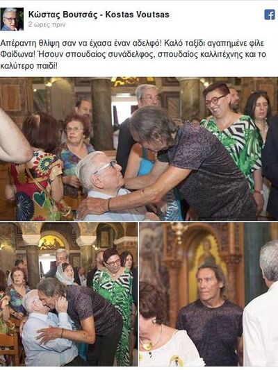 Συγκινητικό είναι το «αντίο» του βετεράνου πρωταγωνιστή Κώστα Βουτσά στον αγαπητό ηθοποιό του θεάτρου, του κινηματογράφου & της τηλεόρασης Φαίδωνα Γεωργίτση που έσβησε στα 80 του χρόνια από καρκίνο στον εγκέφαλο.
