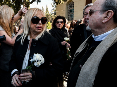 Πλήθος κόσμου σήμερα στο νεκροταφείο της Νέας Σμύρνης στην κηδεία του Φαίδωνα Γεωργίτση. Τραγικές φιγούρες η σύζυγος, η κόρη και ο γιος του, ενώ ρίγη συγκίνησης προκάλεσε η κίνηση να χαμηλώσουν το φέρετρο για να μπορέσει να το ασπαστεί η Μαίρη Χρονοπούλου.