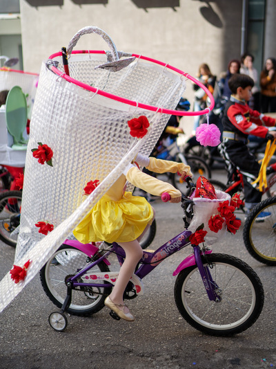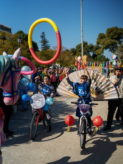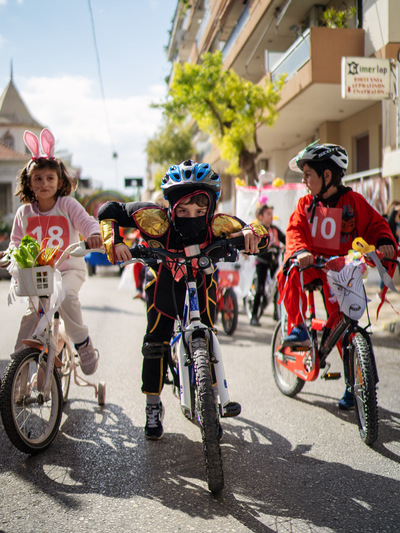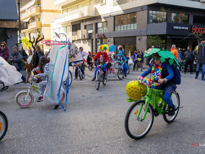 Υπό τους ήχους μουσικής, που διαμόρφωσε την απαραίτητη ατμόσφαιρα χαράς και εξωστρέφειας τα παιδιά με τα ποδήλατά τους έδωσαν τον καλύτερο εαυτό τους και χάρηκαν με την ψυχή τους συμμετέχοντας σε παιχνίδια, διαγωνισμούς και δραστηριότητες, που έβγαζαν κέφι, γέλιο, καρναβαλική διάθεση και αισιοδοξία. Οι μικροί κλήθηκαν να δείξουν τις δεξιότητές τους γεμίζοντας με χρώματα, χαμόγελα, χαρούμενες διαθέσεις, καλλιτεχνικές και καρναβαλικές αμφιέσεις, την πλατεία.