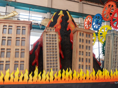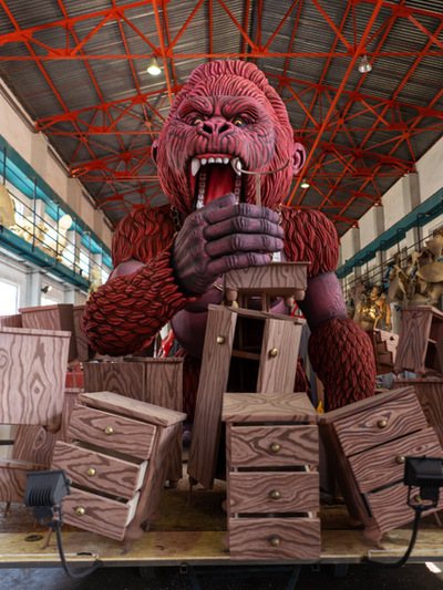 Πίσω από τον γορίλα υπάρχει ένα φλεγόμενο ηφαίστειο και τα οικοδομήματα μιας πολιτείας, που συμβολίζει την φλεγόμενη Ευρώπη. Το κεφάλι του γορίλα θα κινείται και το στόμα με τα σουβλερά δόντια θα ανοιγοκλείνει. Μέσα στο ηφαίστειο θα υπάρχει ειδικός μηχανισμός, που θα δημιουργεί καπνούς που θα βγαίνουν από την κορυφή του.