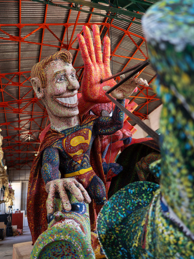 Οι δημοφιλείς ήρωες των παιδικών χρόνων ενέπνευσαν τον Δημήτρη Ντζουμάνη για τον σχεδιασμό και την κατασκευή του άρματος «Σούπερ Ήρωες»