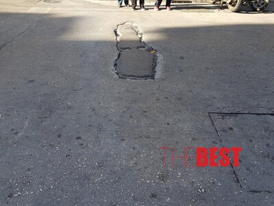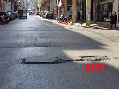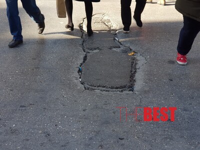 Μια μεγάλη λακκούβα κατα πλάτος της οδού Ερμού, προκαλεί φθορές στα ελαστικά των οχημάτων και επικίνδυνες καταστάσεις κυρίως για τους δικυκλιστές.