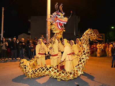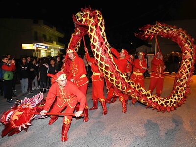 Απόλαυσαν το θεαματικό δρώμενο με τον κινέζικο δράκο που προσέφεραν οι κινέζοι καλλιτέχνες διασχίζοντας τις οδούς Αγ. Ιωάννη Πράτσικα, Ανθείας και Ευβοίας. Κατέληξαν στην κεντρική πλατεία Εργατικών Κατοικιών Ταραμπούρα, όπου και πραγματοποιήθηκαν δρώμενα.